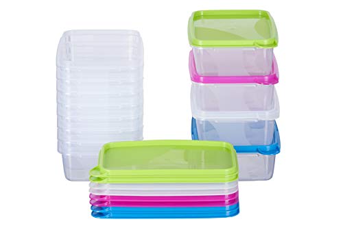 MiraHome Frysburkar 12 x 0,5 l rektangulära, färgglada – förvaringsburkar med lock – förvaringslåda kök för mealprep och organisering – Österrike kvalitet