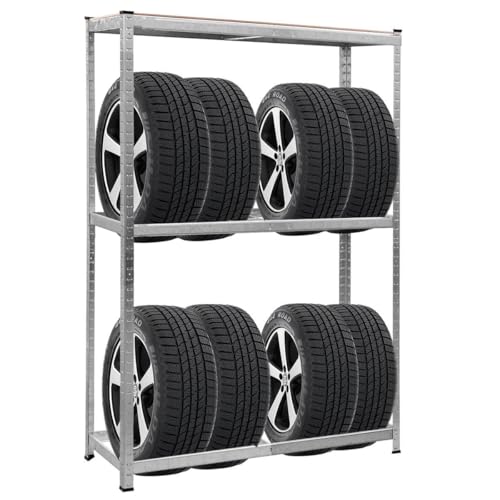 COSTWAY Däckhylla däckställ verkstadshylla tung lasthylla förvaring metall, förvaringshylla i 3 nivåer kan belastas upp till 795 kg, stickhylla höjdjusterbar, fälghylla, galvaniserad, 180 x 120 x 40