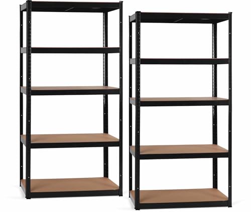 VOUNOT Uppsättning av 2 förvaringshylla metall garage 90 x 40 x 180 cm, tunga lasthyllor, hyllor med 5 hyllor, kapacitet 875 kg, för verkstad, lager, kontor