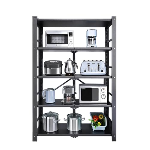 LINSY HOME Stående hylla med 5 hyllor, metallhylla, gallerhylla, metall, förvaringshylla svart med avtagbara krokar för källare, vardagsrum, kontor, kan belastas upp till 225 kg, 54 x 29 x 150 cm H