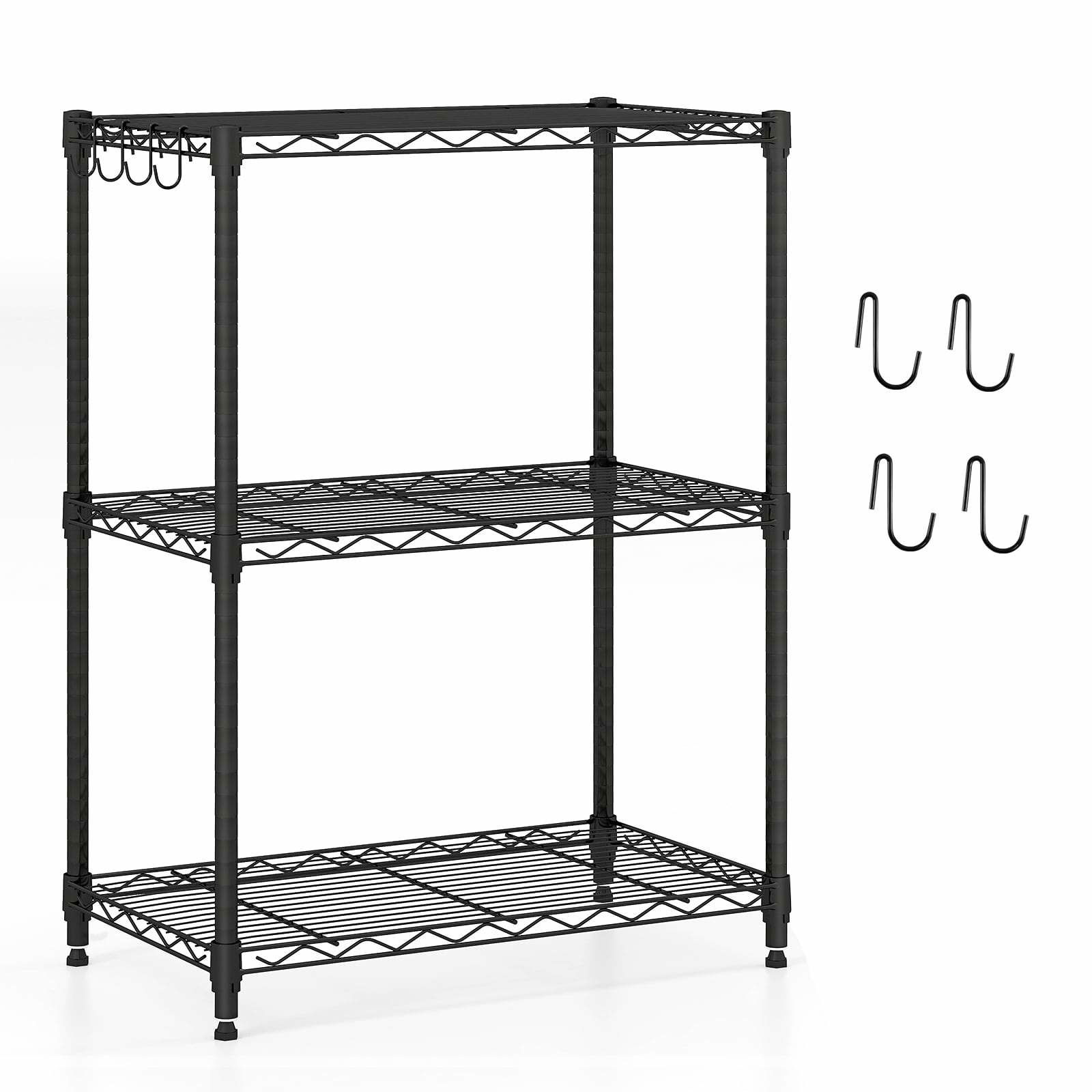 Justerbar, kraftig förvaringshylla i metall med 3 nivåer