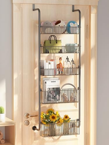 Cozywind Förvaringshylla för dörren, metall, 5 nivåer över dörren, förvaring, organiserare, metall, kök, baksida av dörren, förvaringsställ, hyllor med 5 korgar för skafferi, badrum, sovrum (5
