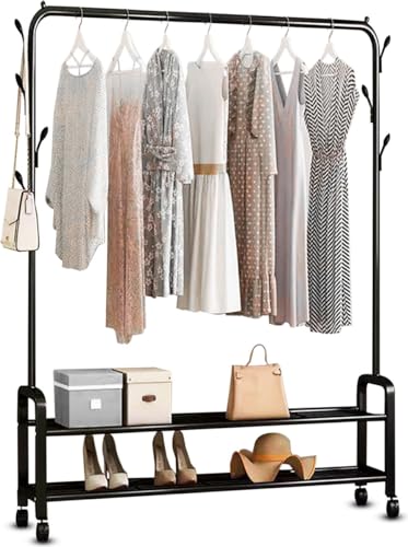 Vonia Klädställning Dubbelt med Skohylla – Garderobställ i Metall med Klädstång och Förvaringshylla – Stabil Klädhängare 159x34x98 cm – Svart