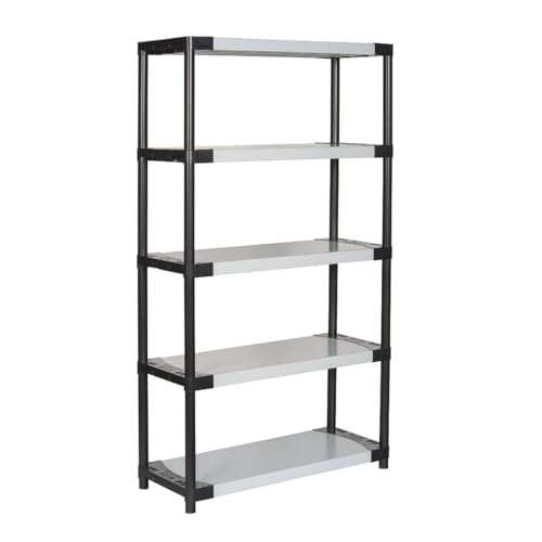 Bayersystem SMARTPLAST 1000 förvaringshylla, plasthylla med 5 hyllor, 185 x 100 x 40, upp till 350 kg, tung lasthylla, källarhylla, verkstadshylla, av plast, grå/svart