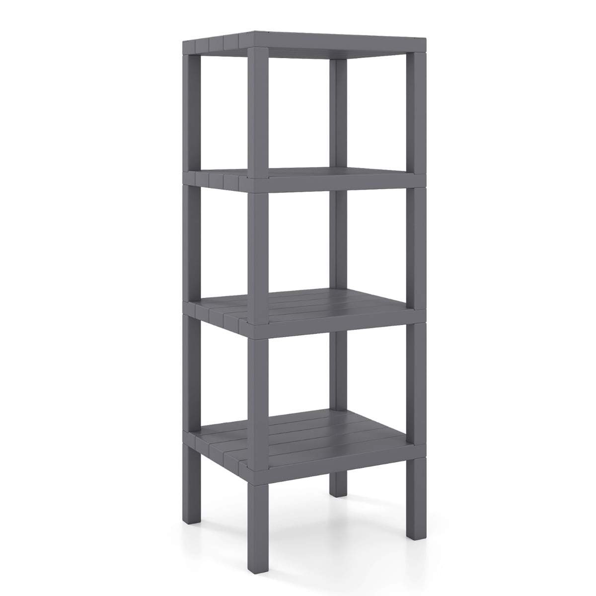 Smal förvaringshylla i plast med 4 våningar – grå, enkel montering