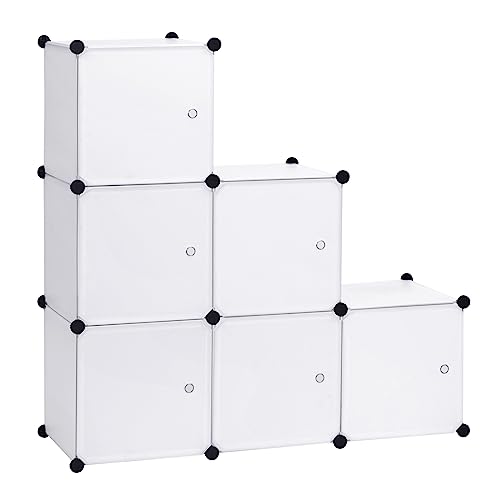 WOLTU Garderobsskåp, gör-det-själv, garderob, hyllsystem, hylla, förvaring, förvaringshylla, bokhylla med dörr, 6 fack, plast, 96 x 30 x 96 cm (B x D x H), vit SR0056ws