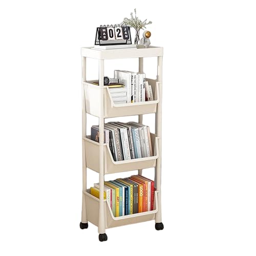 Avilia Rymdbesparande badrumsskåp 4 hyllor - vit plast multifunktionell förvaringshylla, kök och sovrum arrangör med hjul, 31,2 x 82,5 x 19 cm