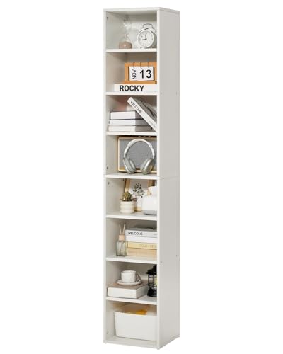 VEVOR Smal bokhylla med 8 nivåer, öppen förvaringshylla i trä med höjdjusterbar hylla, 180 cm, fristående förvaringshylla för sovrum, vardagsrum, kontor, vit
