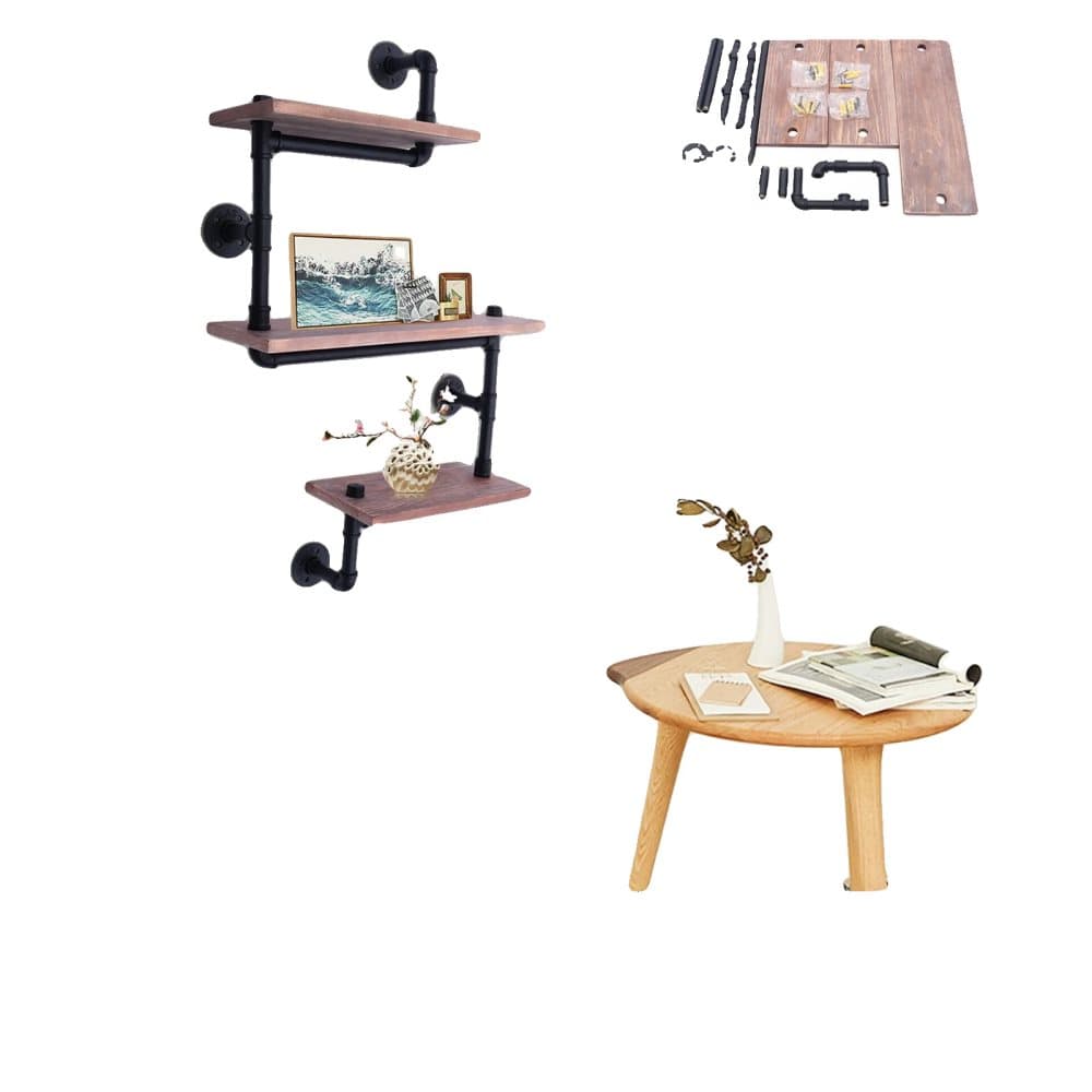 Väggmonterad förvaringshylla, massivt trä och metall, 3 hyllor, Mått: 70,00 x 25,00 x 20,00 cm, Vikt: 6 kg, Enkel installation