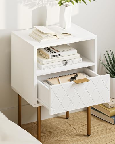 HEYZOEY Sängbord, små sängbord med låda och förvaringshylla, trä nattduksbord med guldben, mitten av århundradet modernt sängbord för sovrum, vardagsrum, vit
