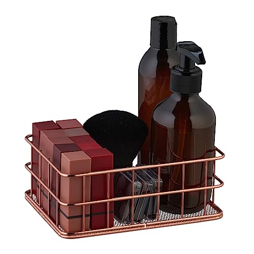 Relaxdays förvaringskorg, organisatör, tråd, metall, kub, HxBxD: 6,5 x 17 x 12,5 cm, kontor, kök, badrum, roséguld