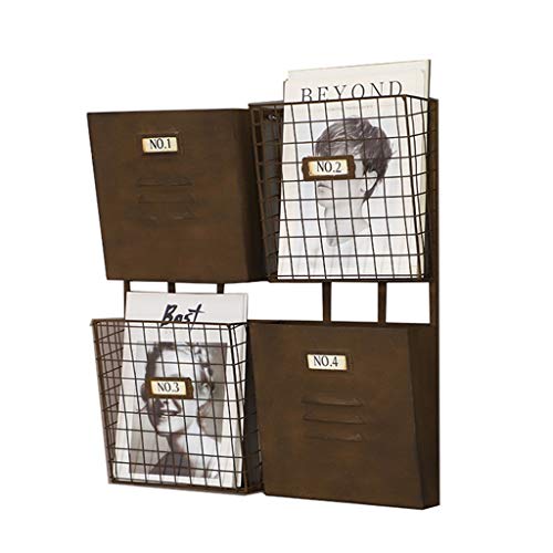 Vintage metall väggmonterad tidningsställ kontor flera lager tidningsställ vägghängande förvaringskorg brun