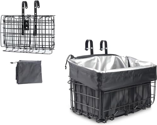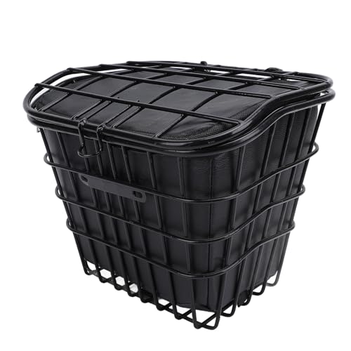 Cykelkorguppsättning, Metall Black Cykel Front Förvaringskorg Cykelkorg Lid Vattenbeständig Foderpåse för Elektrisk Skoter