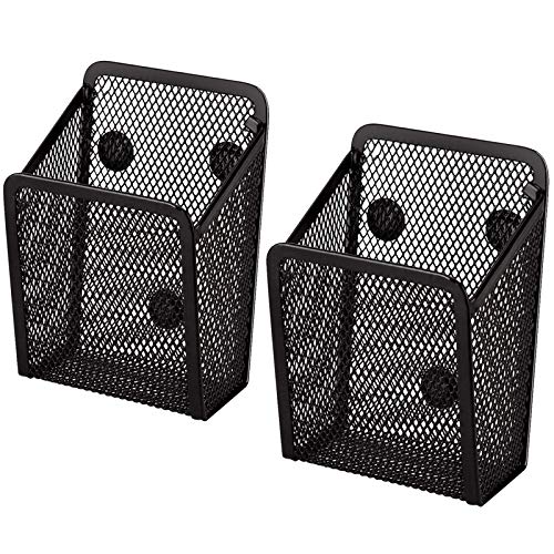 QUVBKZ Magnetisk pennhållare, magnetisk pennhållare, barn, pennlåda, svart metall, whiteboard, skåp, kontorstillbehör, pennhållare, förvaringskorg (2)