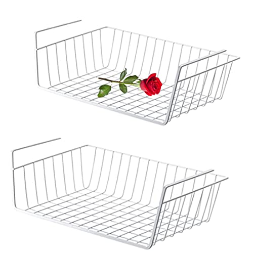 Förvaringskorg, 2 stycken hängande korgar i metall, hängande korg, hylla under skåp, hängande korg, metallkorgsorganisatör, hylla för kök, kontor, skafferi, badrum, skåp, vit