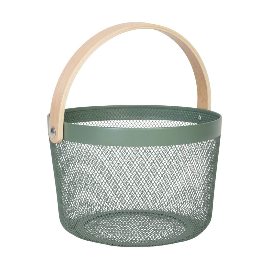 Förvaringskorg i metall med trähandtag – mångsidig organisatör