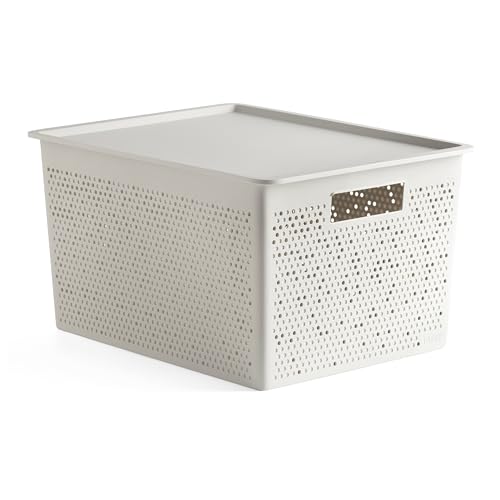 TATAY Förvaringskorg Plast 20 L Bohol med Lock | Organizer | Optimal Ventilation | Stapelbart Modulsystem | Integrerade Handtag | Återvunnen Plast BPA-fri | 30x39x21,5 cm, Vit