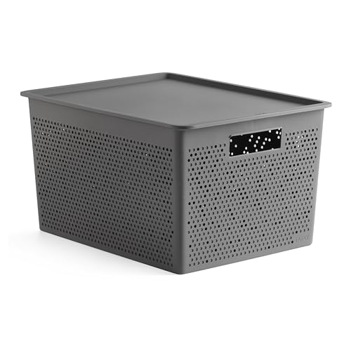 TATAY Förvaringskorg Plast 20 L Bohol med Lock | Organizer | Optimal Ventilation | Stapelbart Modulsystem | Integrerade Handtag | Återvunnen Plast BPA-fri | 30x39x21,5 cm, Grå