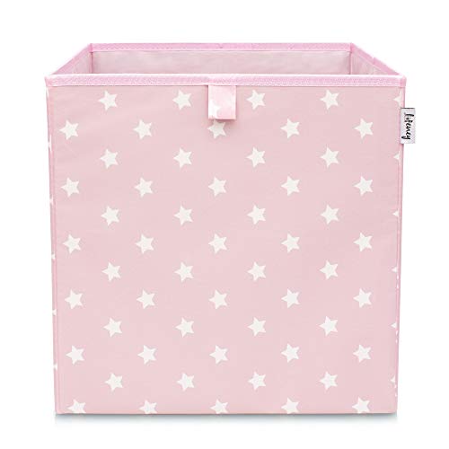 LIFENEY Förvaringslåda med stjärnmotiv i rosa I Leksakslåda med stjärnor lämplig för kubhyllor I Förvaringslåda för barnrummet I förvaringskorg som tillbehör | 33 x 33 x 33 cm ..