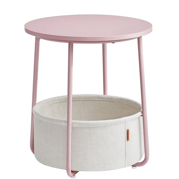 Runt Sängbord med förvaringskorg - Rosa/Vit