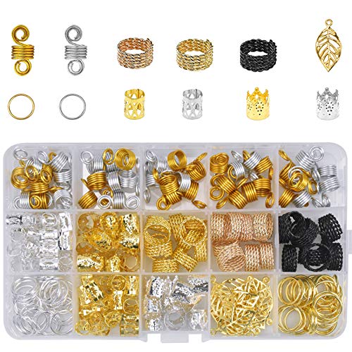 YMWALK 200 st hårsmycken hårtillbehör för flätor dekorationer inklusive hårmanschetter metall hårflätning pärlor ringar hängen hårklämmor aluminium hårspole dreadlocks med förvaringslåda