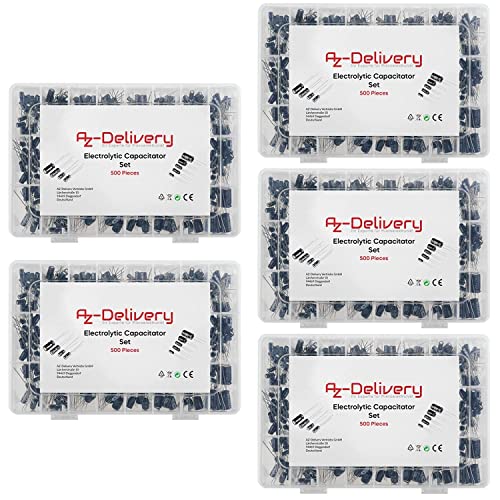 AZDelivery 5 x ElKo Sortiment Elektrolytkondensator Aluminium 24 Värde 500 Stycken 0.1uF - 1000uF med Förvaringslåda kompatibel med Arduino inklusive en E-Book!