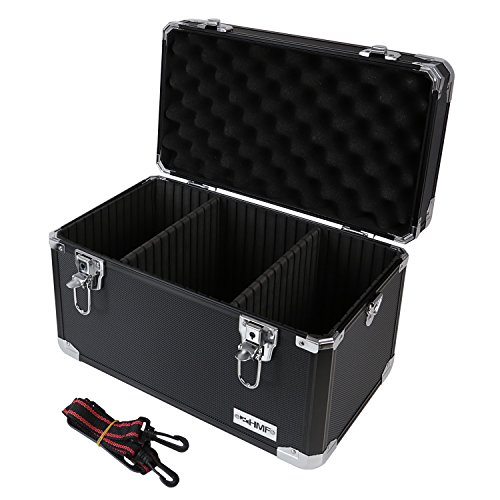 Retro musique Förvaringslåda i aluminium på 17,8 cm för vinylskivor som rymmer upp till 35 EP (i PVC-kuvert) och 35 ytterfickor för vinylskivor, Röd, retro