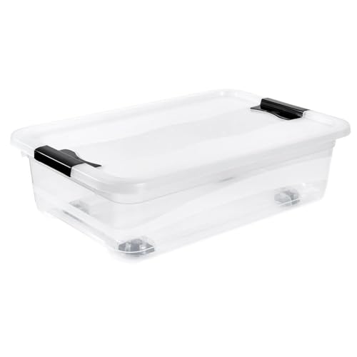 keeeper Förvaringslåda med hjul, lock och skjutstängning, 59,5 x 39,5 x 18 cm, 28 l, konhjul, transparent