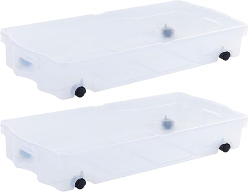 Gummimaid Under Bed Hjul Förvaringslåda, 68 Qt 2-pack, tillverkad i USA, plastbehållare med dubbla gångjärn lock och robusta hjul, synlig organisation för trånga utrymmen