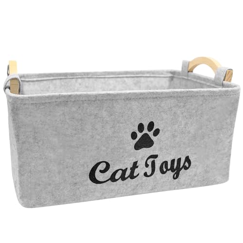 INHEMING Filt-förvaringslåda för kattungar, hundleksaksorganisatör, valpar saker korg, husdjursaccessoarer, låda, 38 cm x 25 cm x 18 cm (grå)