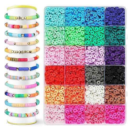 Vicloon Lerpärlor, 4 500 stycken, 23 färger, platta, runda polymerlerpärlor, förvaringslåda med 24 fack, flerfärgade, 6 mm i diameter, Heishi-lera, mellanpärlor, perfekt för smyckestillverkning