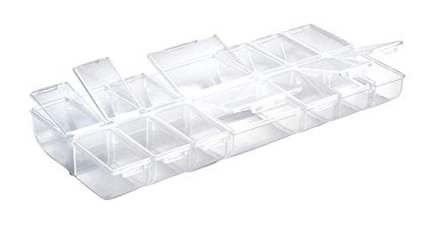 RAYHER 3902300 arrangör för pärlor och konst- och hantverksmaterial, klar förvaringslåda med 14 fack, vit, 24 x 11 x 2,8 cm