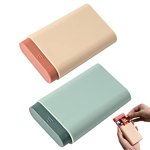 Silars Resepillerlåda, 2 st förvaringslåda, pillerlådor med 6 fack, fickpillerlåda för daglig resemedicin (grön + rosa)