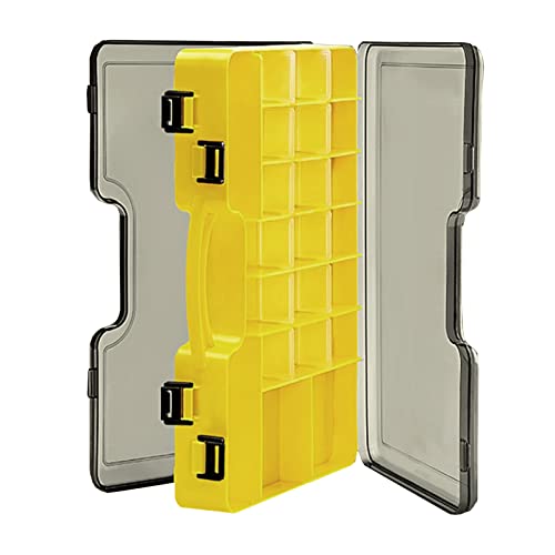 Dubbelsidig fiskelåda, plastfisketillbehör, betesbox, förvaringslåda för fisketillbehör med fack, vattentät bärbar fiskelåda, för fiskeentusiaster (29 l x 19 B x 5,8 cm, gul)