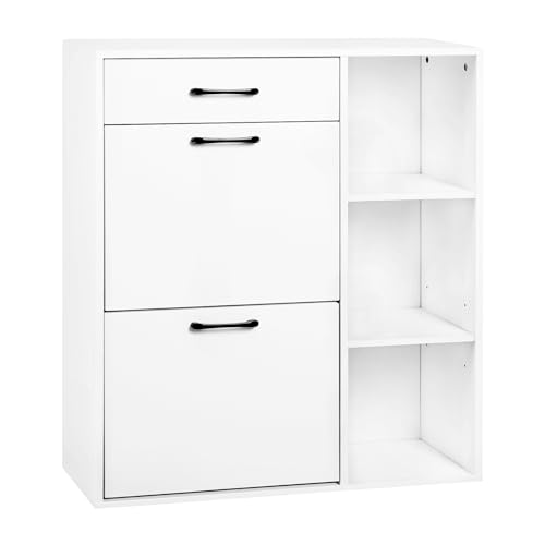 WOLTU Skohylla, skoförvaring med 3 hopfällbara fack, skoskåp, skoförvaring, smalt högt, med förvaringslåda, öppna fack, utrymmesbesparande, av trämaterial, 80 x 90 x 30 cm, vit