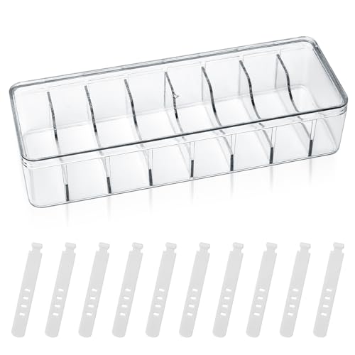 Kabel förvaringslådor, organisatör, plastkabel, förvaringslåda med 8 fack, kabelhanteringslåda med lock, transparent kabelorganiseringslåda för skrivbord kontor hemma, med 10 buntband