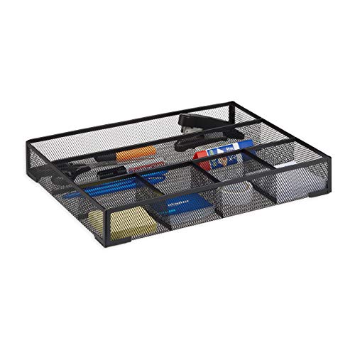 Relaxdays Skrivbordsorganisatör stor, halkfri förvaringslåda med 6 fack, metallnät, H x B x D: 6 x 38 x 30 cm, svart