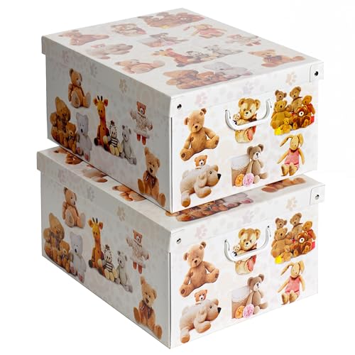 Kanguru Collection Peluches dekorativ förvaringslåda med handtag och lock, flerfärgad, stor 2 delar, 50 x 39 x 24 cm
