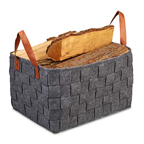 Relaxdays Förvaringskorg av filt, vikbar förvaringslåda, filtkorg med handtag, H x B x D: 26 x 40 x 30 cm, mörkgrå, 1 st