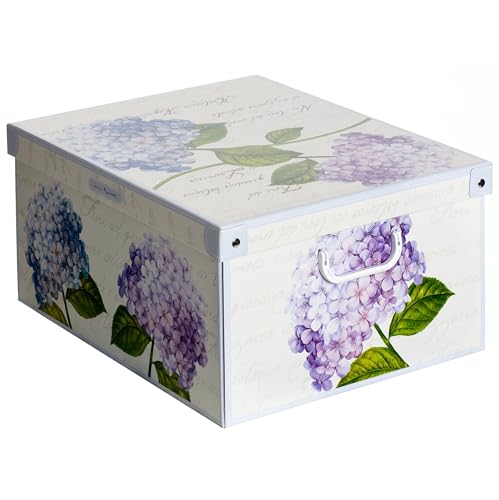 KANGURU Dekorativ förvaringslåda med handtag och lockkollektion ortensie/hortensior, stor