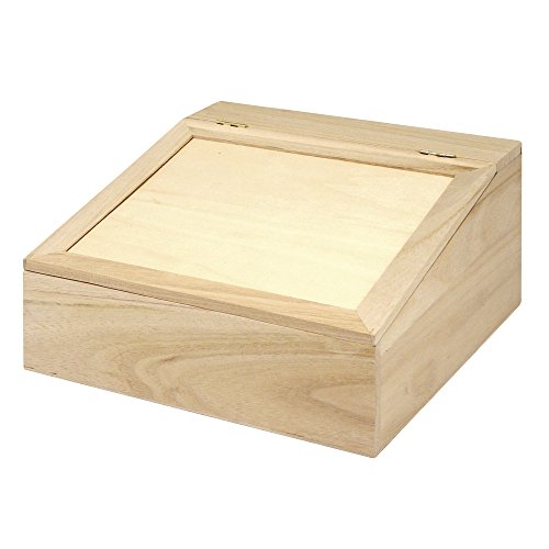 Rayher Hobby Trälåda Med Sneda Gångjärnslock, 24 x 24 x 12 cm, FSC-Certifierad, Förvaringslåda Med Lock, Trä