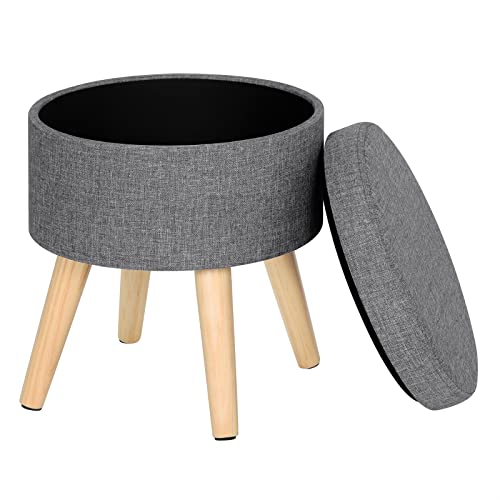 WOLTU® Sittpall med förvaringsutrymme fotpall förvaringslåda, avtagbart lock, stoppat linne sits, massivt trä, ljusgrå, SH08hgr-1