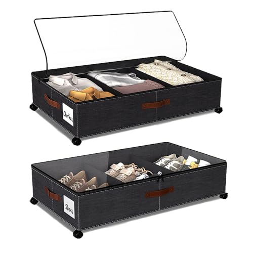 lomonmen 2 stycken förvaringsbox för undersäng med hjul, förvaringslåda med hjul 360° rotation och lock, undersängsbyrå med hjul metall, förvaringsväska under säng