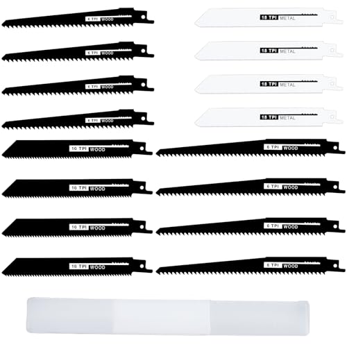 10-delar Saber sågblad med hög kolhalt, 4 x R1021L (240 mm) + 6 x R644D (150 mm), för träskärning, för Makita Bosch Dewalt för trä och metall med förvaringslåda
