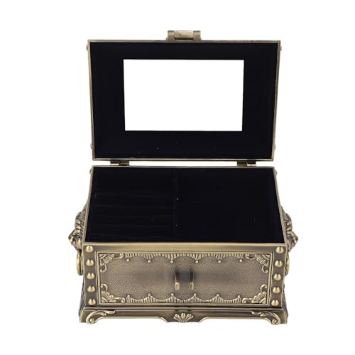 Metalldekorativ Smyckeslåda, Smycken Förvaringslåda Metall Trinket Storage Box Drawer Type Earring Halsband Armband Organisator Dekorativ Låda med Lås för Hemmet (antik brons)