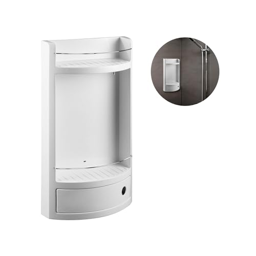 Avilia Badrumshylla med 2 hyllor och låda - Duschhylla med förvaringslåda och 2 hyllor, av metall och ABS, 51 x 28,8 x 13,5 cm, vit