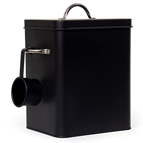 Theo&Cleo tvättmedel förvaring 6,5 l, metall tvättpulverlåda, förvaringslåda för hundmat, kattmat, kaffebönor (kol)