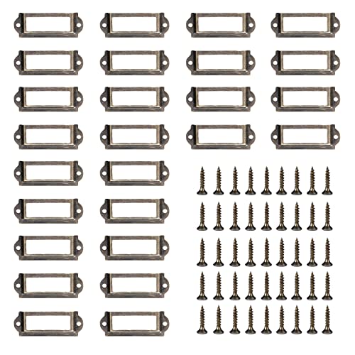 Eabdice 50 stycken etiketthållare i metall, vintage metall, förvaringslåda, arkivskåp, etiketter, dörr, kontor, bibliotek (60 x 24 mm/brons)