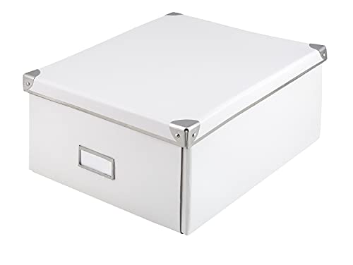 Idena 10519 – förvaringslåda av fast kartong, lock med förstärkta kanter av metall, låda för allmän användning i vitt inklusive märkfält, för hushållsorganisation, kontor och arbetsrum