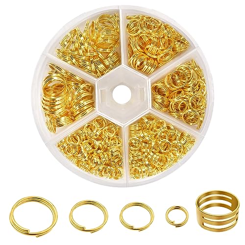 TOAOB 600 st dubbel korsring i metall, öppen ring, hoppring, smyckeskontakt, kedja, länkar, guld, 6 mm, 8 mm, 10 mm, 12 mm, med förvaringslåda för smyckestillverkning